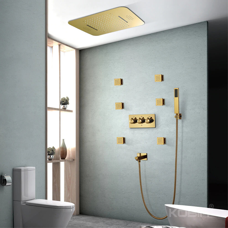 Gold Brushed Concealed Shower Faucets Bathroom Wallmixer Thermostatic Big Top Bathing Tap