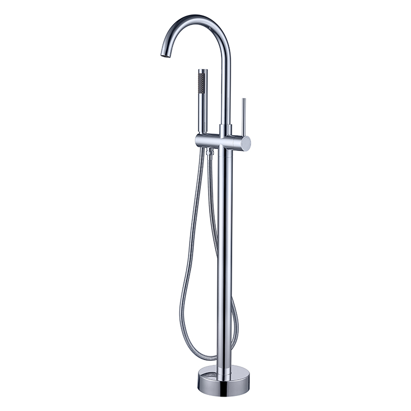 Floor Mount Tub Filler Single Handle Brass Tap with Hand Shower and Swivel Spout Chrome Freestanding tub mixer